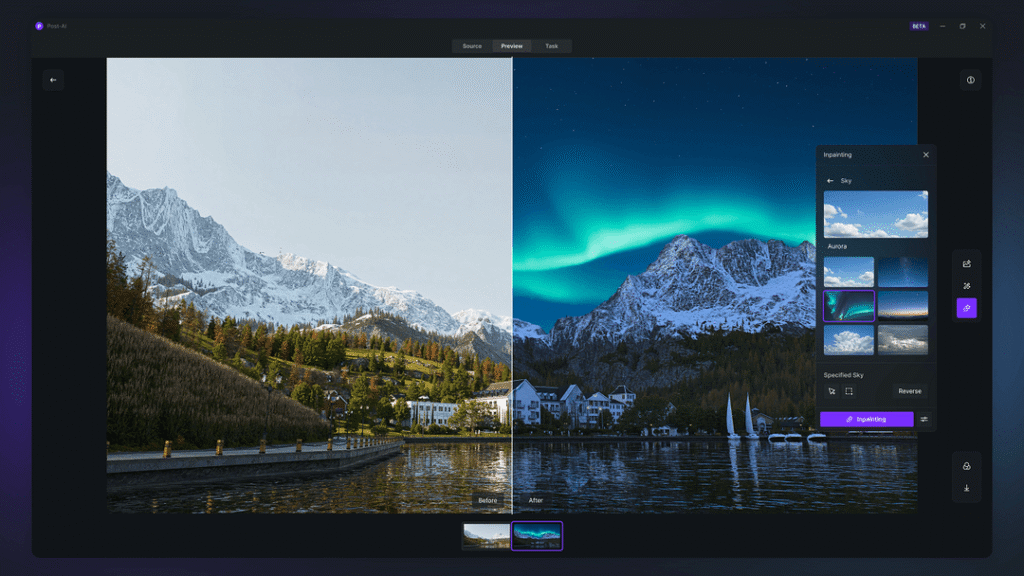 Inpaint sky, water, or vegetation In a Click
